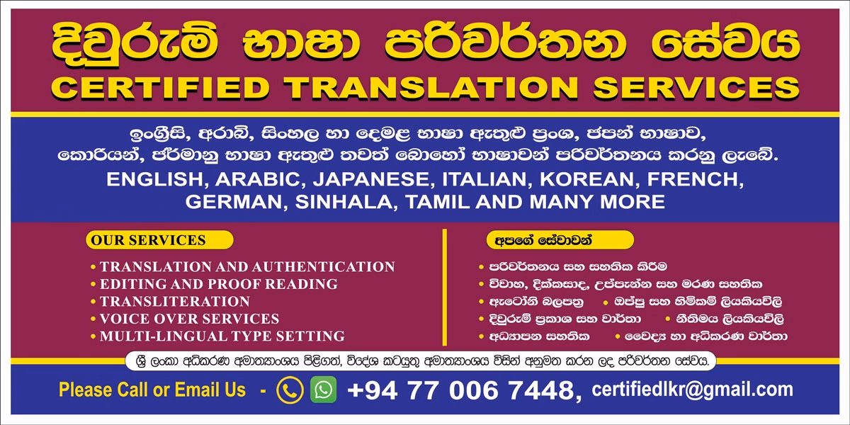 Please email or call us.  [email protected]                                                                                                                                        +94 77 006 7448